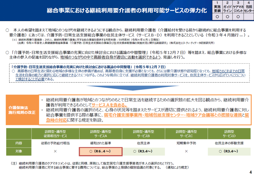 引用:総合事業における継続利用要介護者の利用可能サービスの弾力化|厚生労働省