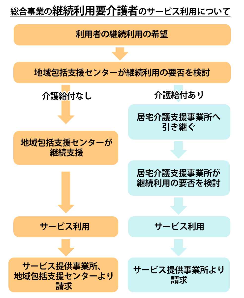 「継続利用要介護者」とは、要介護者が介護給付(要介護認定)を受ける前から継続的に総合事業を利用している要介護者のことを指します。